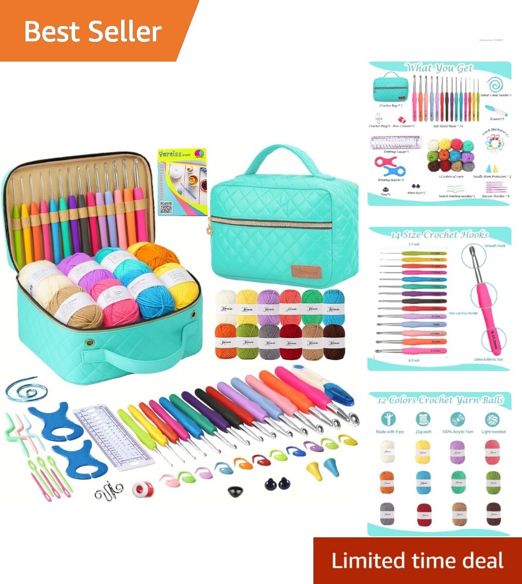 Portable Crochet Kit with 14 Hooks & 12 Yarns: Perfect for Aspiring Crafters