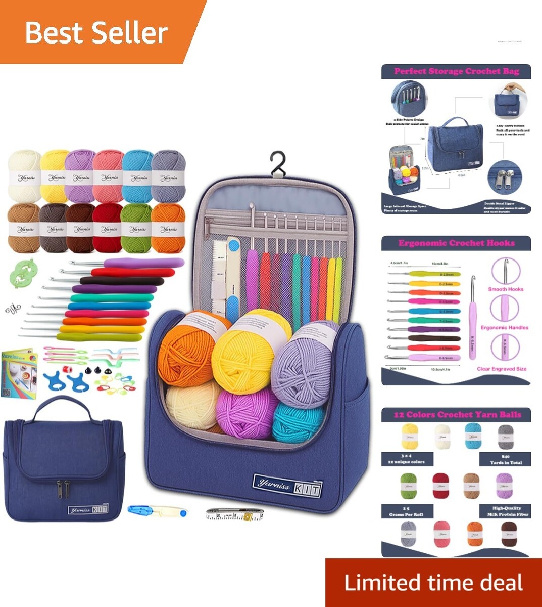 Ergonomic Crochet Kit with 12 Colorful Yarns & Tools – Perfect Gift for Crafters
