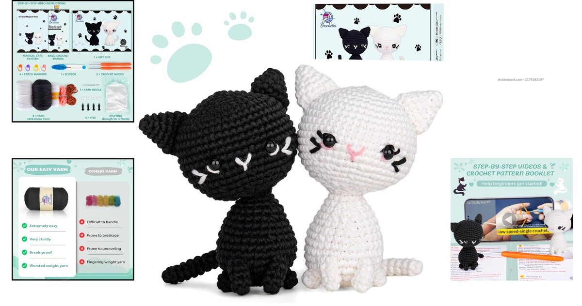 Magical Cats Crochet Kit for Beginners - Step-by-Step Video Tutorials Included