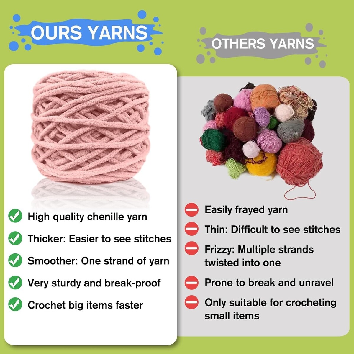 Crafted with Chenille yarn, thicker and softer, ensuring smooth crocheting and defined stitches.