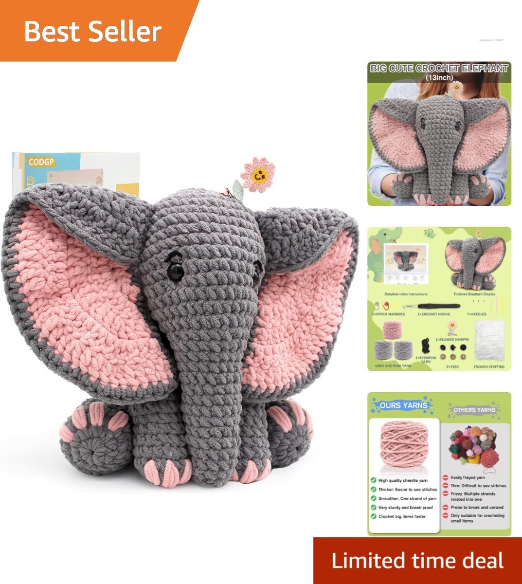 Complete Amigurumi Elephant Crochet Kit for Adults Kids - Gift Ready Delight