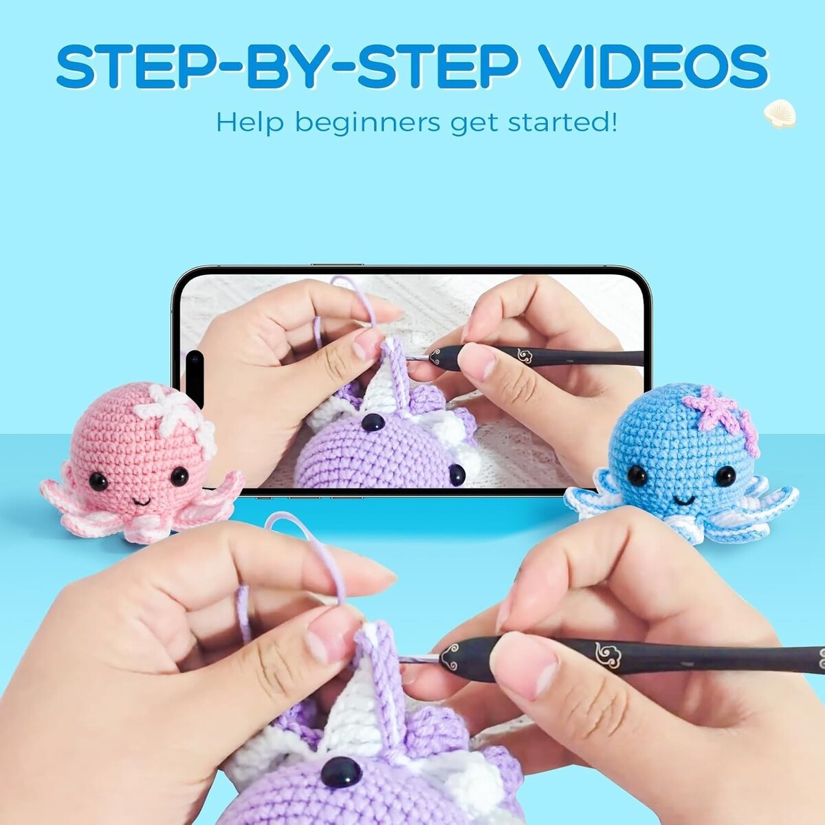 Easy Crochet Kit with Video Guides: Create Your Own Cute Amigurumi Animals