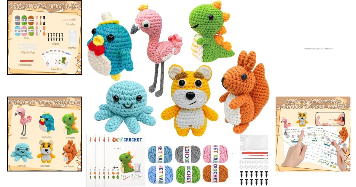 Beginner's Crochet Kit - 6 Animal Designs and 50 similar items