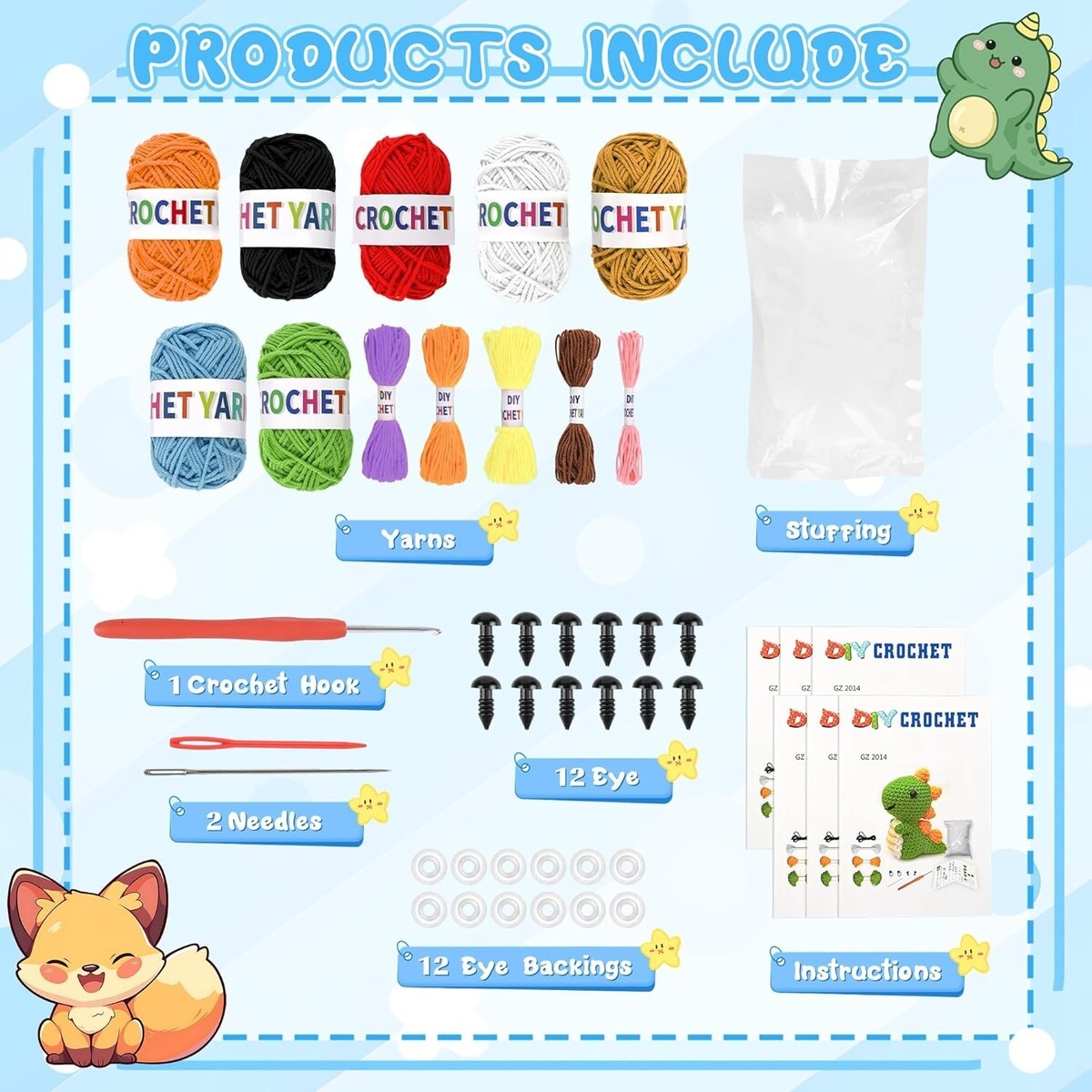 Beginner-Friendly Crochet Kit - 8Pcs Animal Designs with Easy Video Instructions