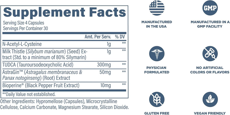 Powerful Key Ingredients: Includes N-Acetyl-Cysteine to help replenish glutathione levels, Milk Thistle for liver cleansing, and TUDCA to support healthy bile function.*