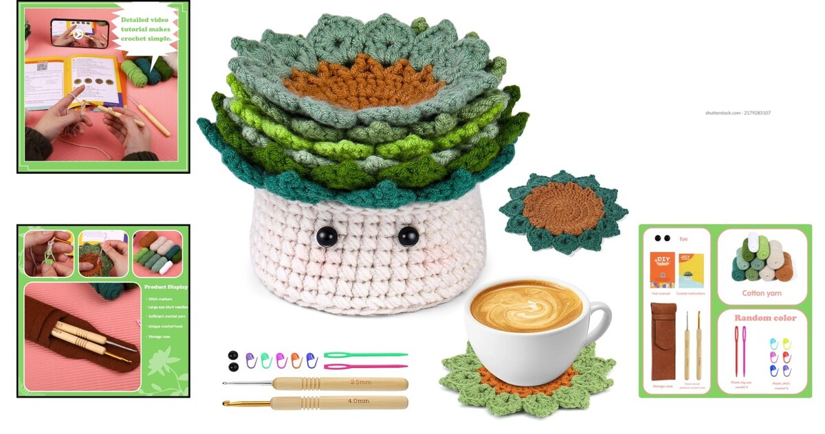 If you seek an inspiring way to express creativity or gift someone special, look no further than our High-Quality 6PCS Crochet Coaster Kit. Designed with beginners in mind, this all-inclusive kit not only teaches the art of crocheting but also provides a therapeutic and rewarding crafting experience. Transform yarn into beautiful coasters and imaginative potted plants?perfect for your home or as a gift. Embrace your creativity and order your crochet kit today!
