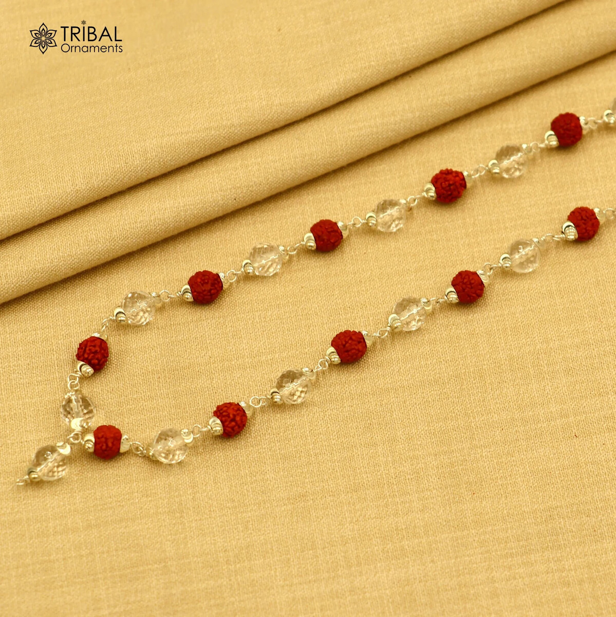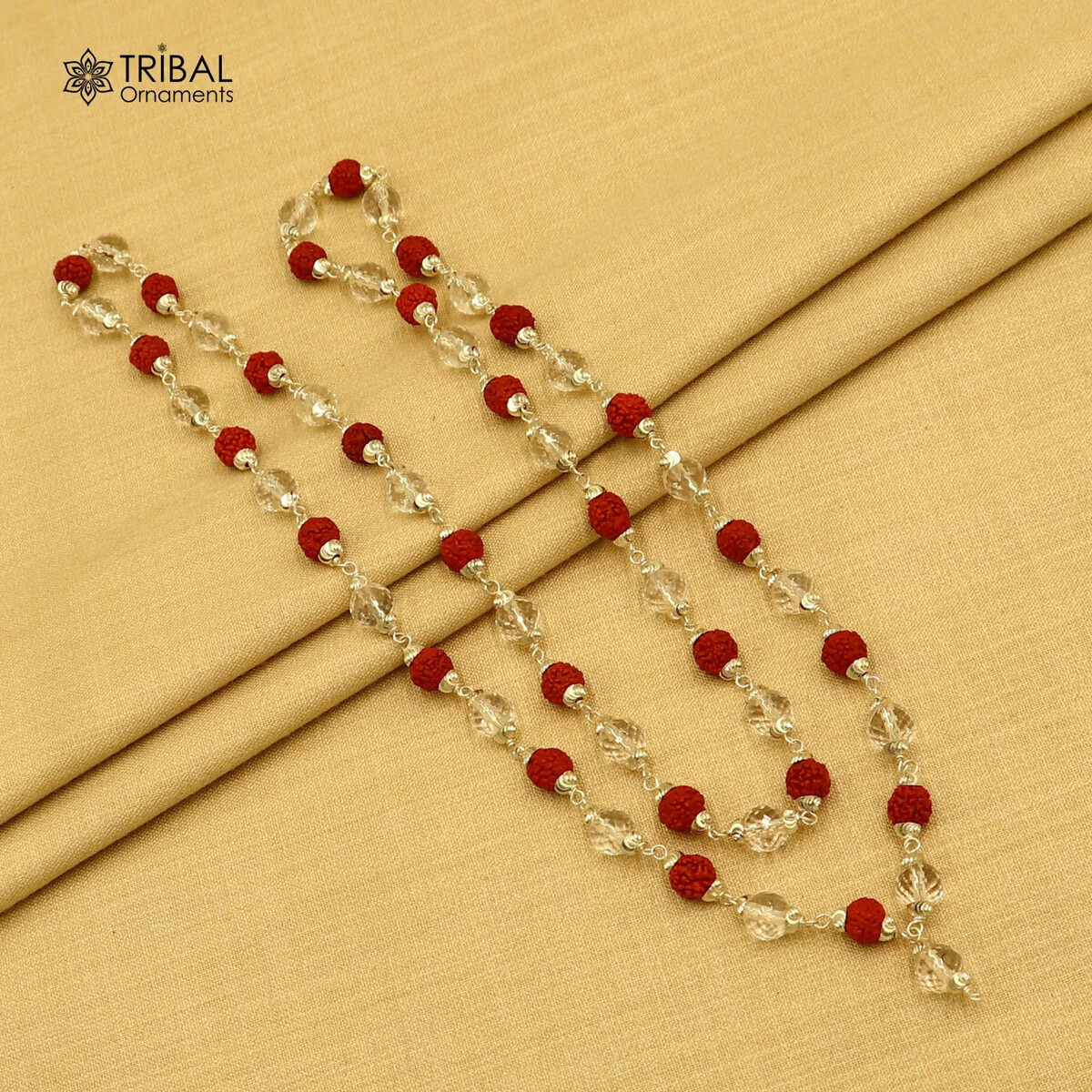 54/108 beads 925 solid silver Rudraksha and Sphatik bead navkar jaap mala ch614