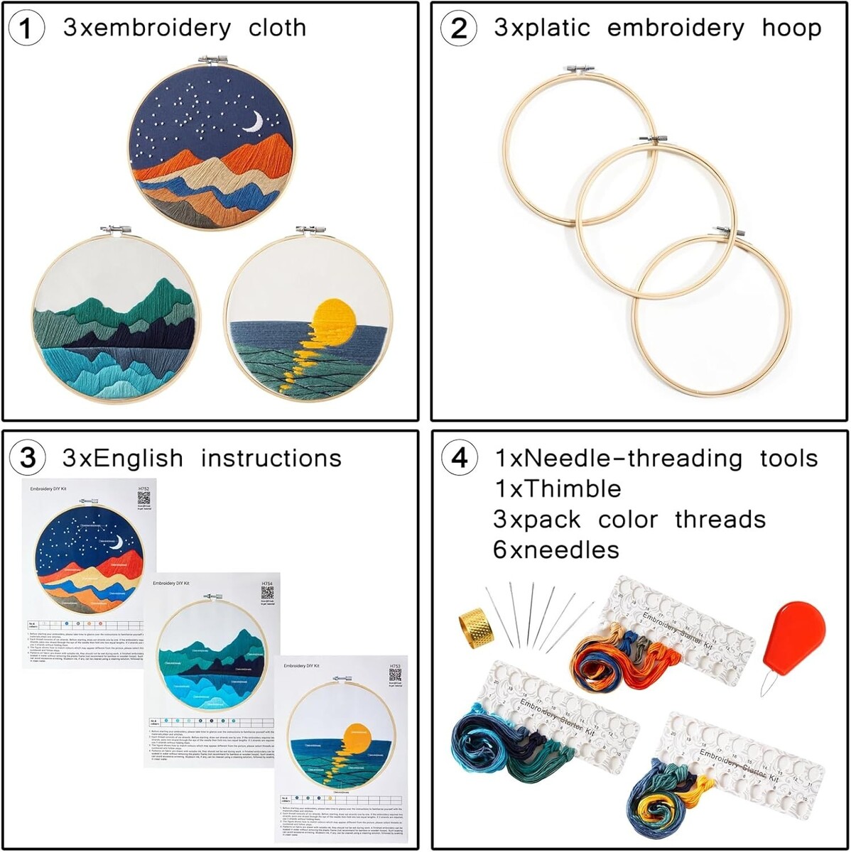 Adult Embroidery Starter Kit: 3 Hoops & Comprehensive Instructions Included