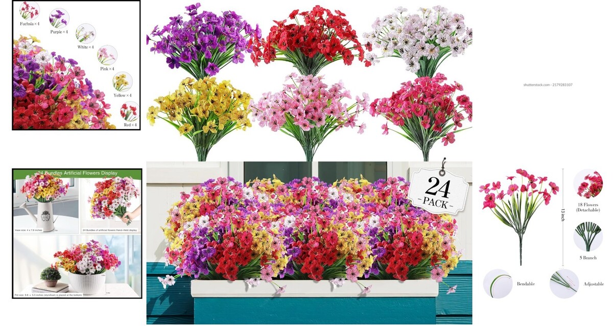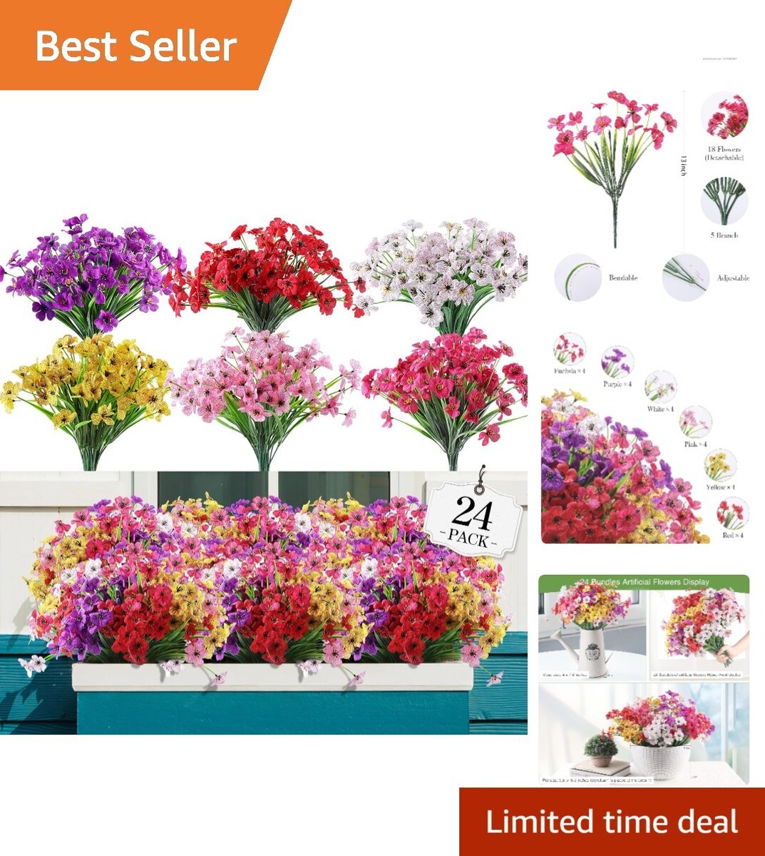 24 Bundles of Vibrant Artificial Flowers - No Fade Faux Plants for All Occasions