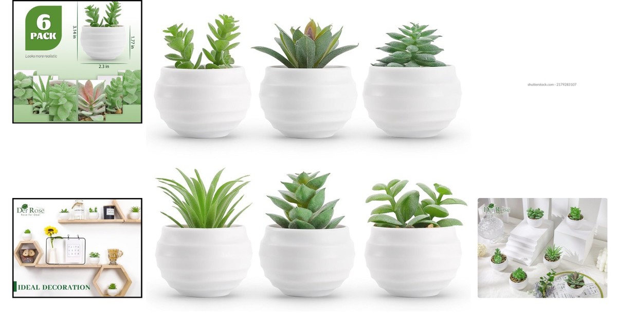 Package Value: Includes 6 different small artificial plants indoor. Each fake succulent comes already set in its own plastic pot for easy displaying.