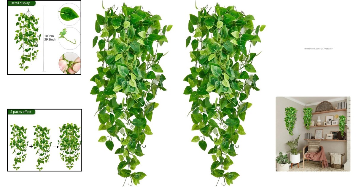 Set of 2 Realistic Artificial Ivy Vines for Effortless Indoor/Outdoor Decor