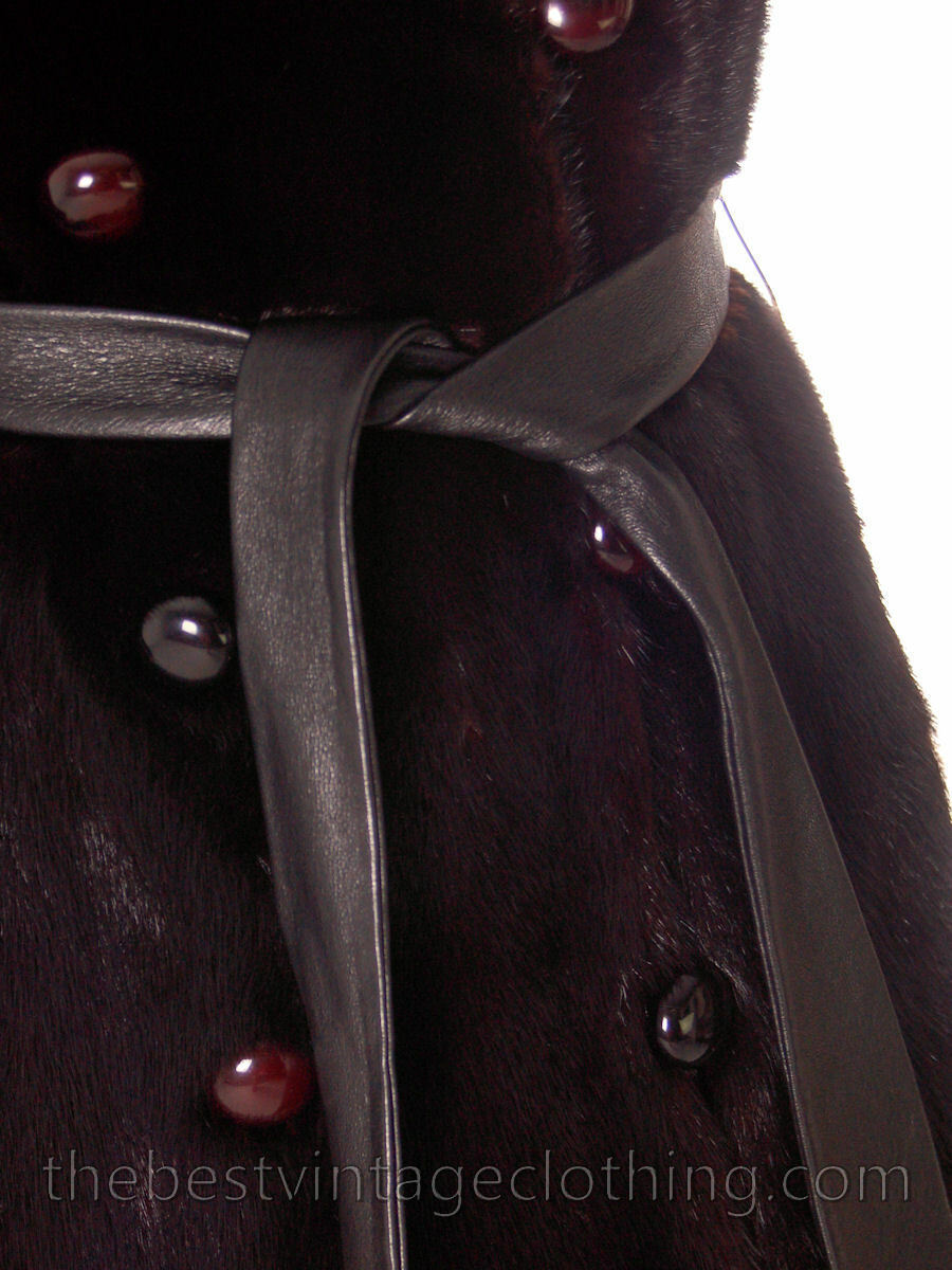 Mob Wife Era S FUR Coat Black Ranch Mink Trench Coat w/ZIP off Stole 1970s