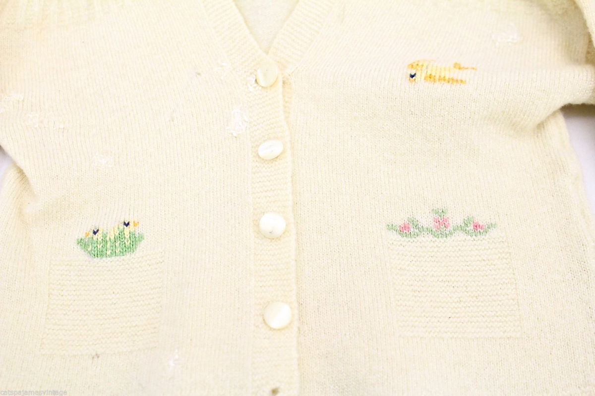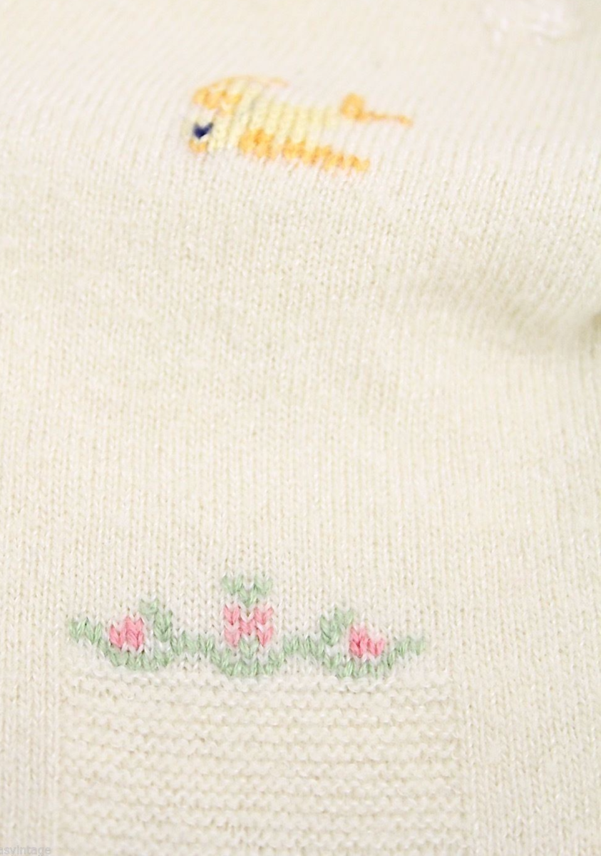 Vintage Ivory Wool Infant Sweater Bird Nest Embroidery Doll Size 1950s