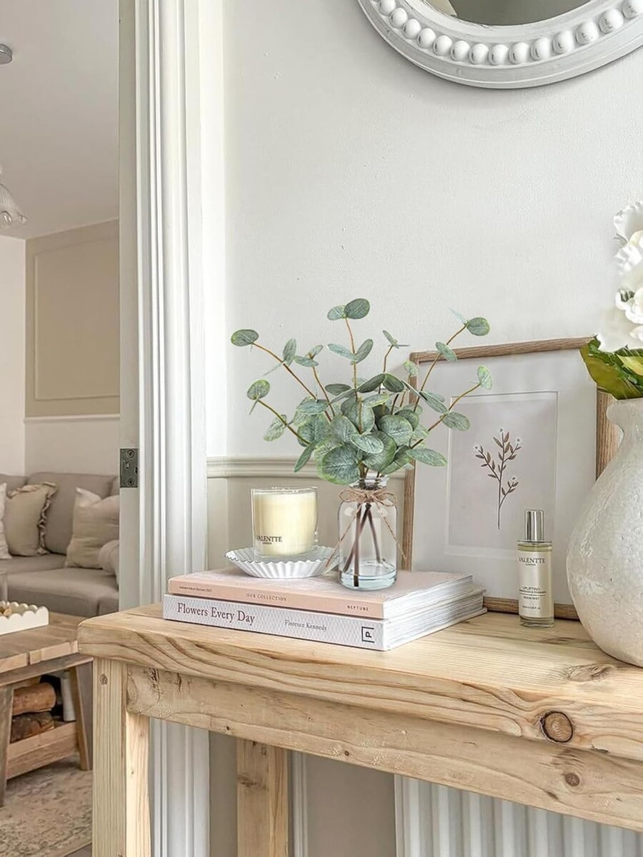 Faux Eucalyptus Stem*3, Glass Vase*1 |