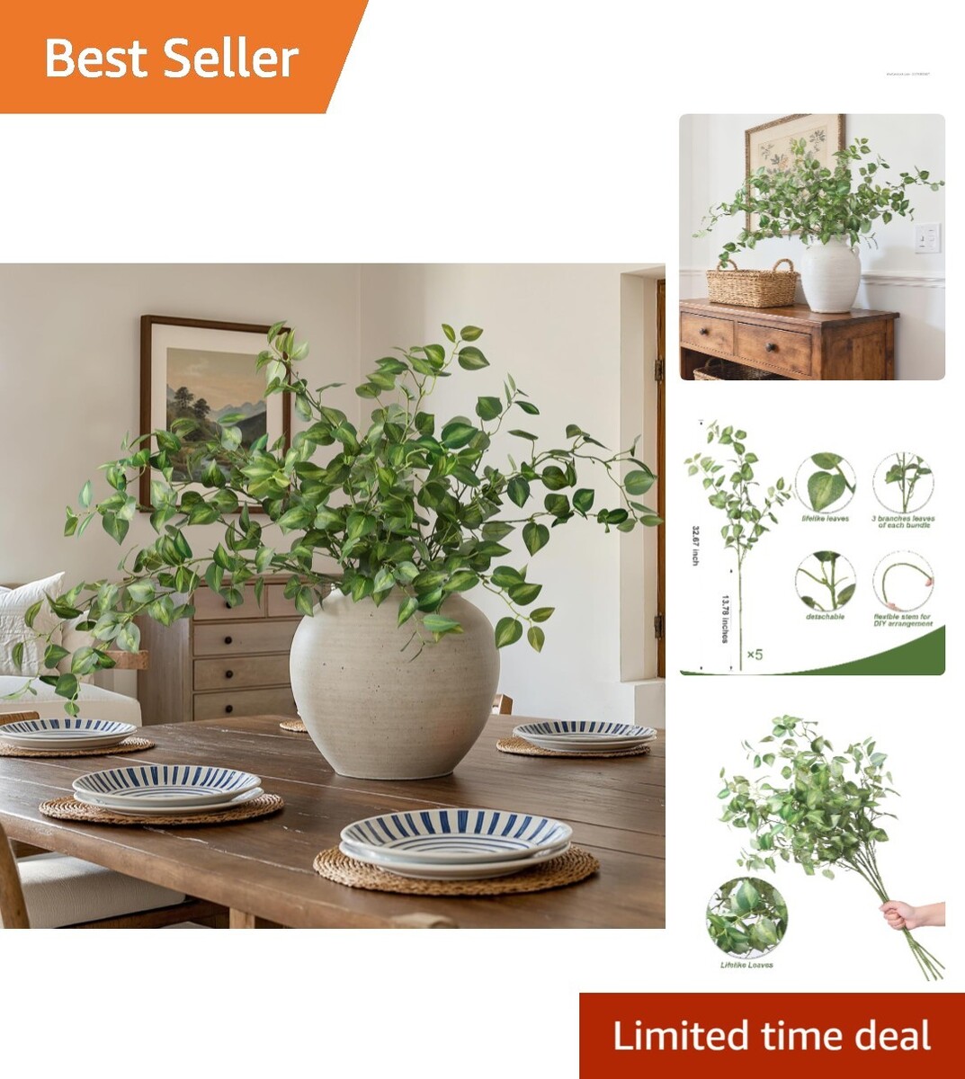 32.7" Faux Eucalyptus Leaves Stem Plants - 5PCS for Stunning Spring Decor