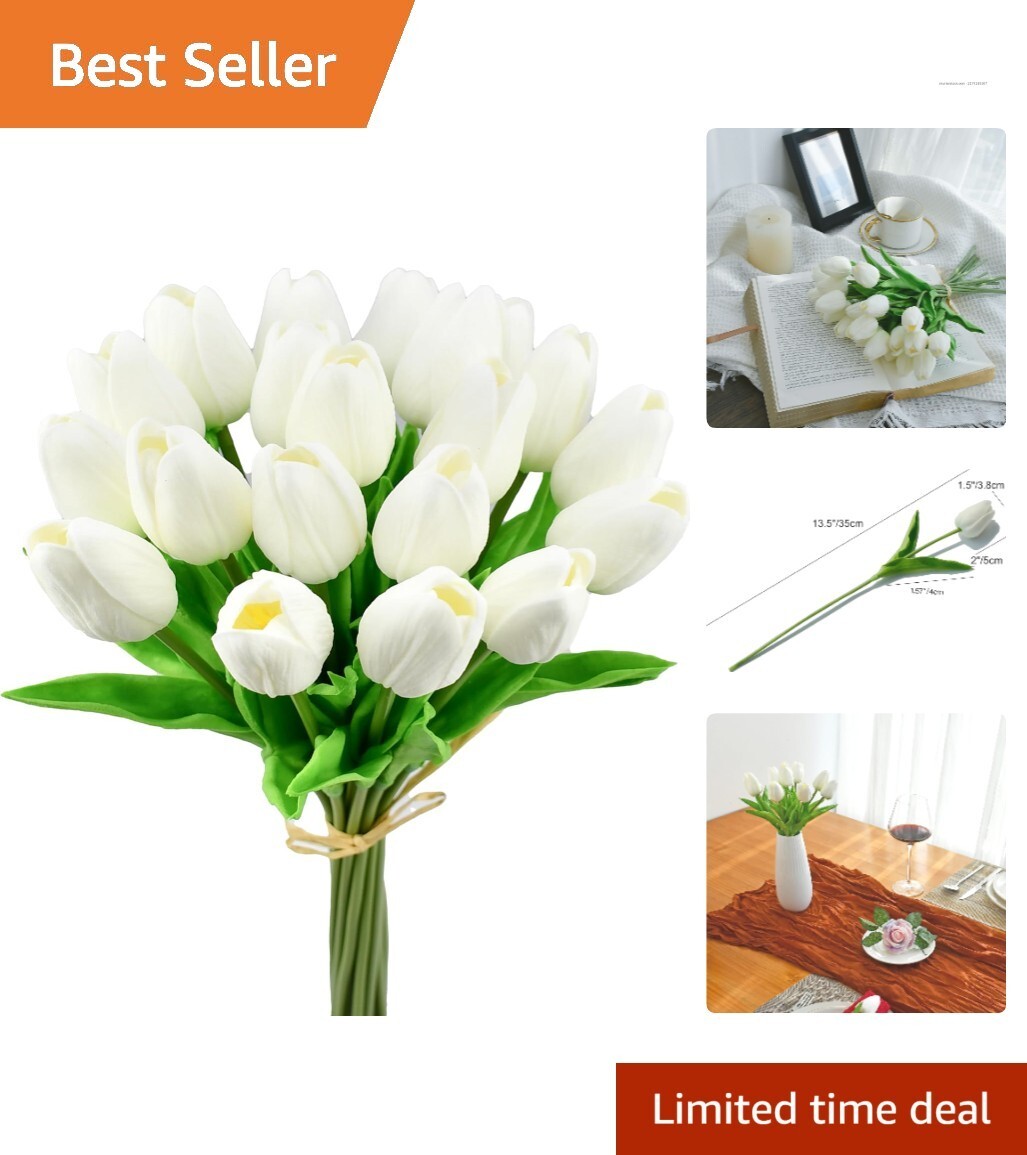 Flexible 20 Stem White PU Tulip Bouquet - Ideal for Events Home Centerpiece