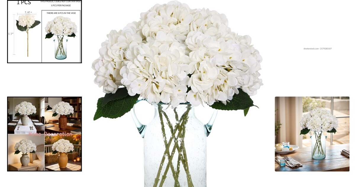 Lifelike Faux White Hydrangeas - 6pcs and similar items