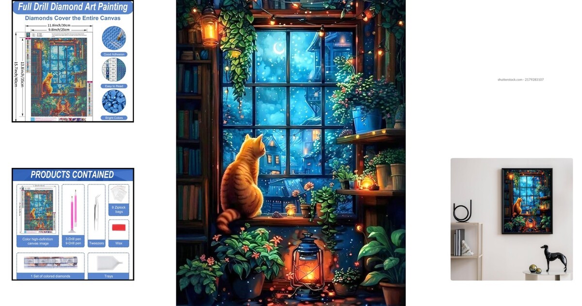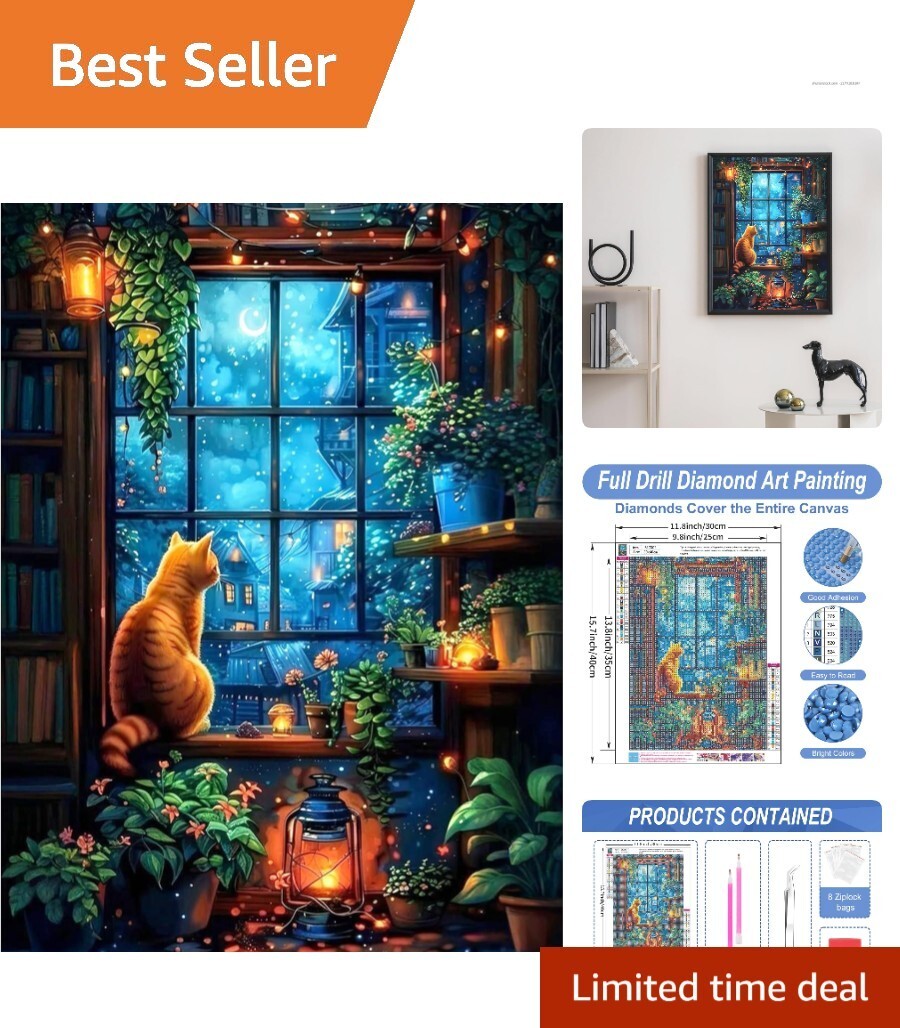 Relaxing 5D Diamond Painting Kit for Adults - Cat and Landscape Art, 12x16