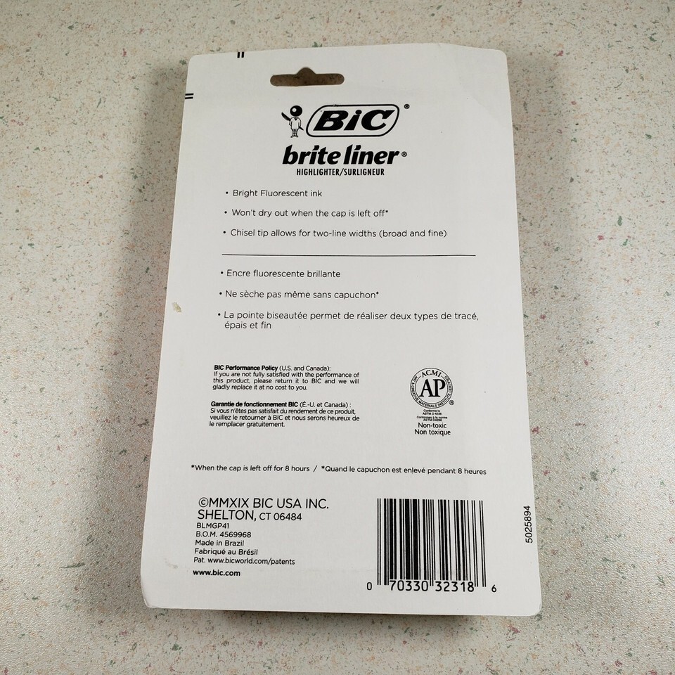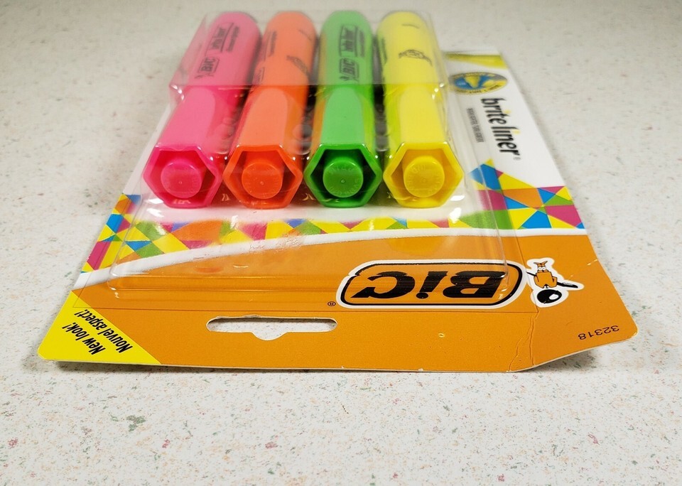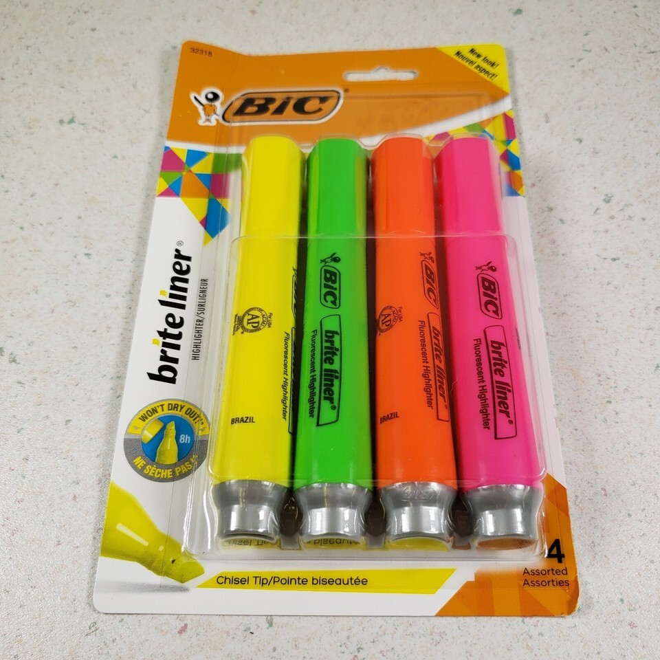 BIC Brite Liner Highlighter Chisel Tip Assorted Colors Fluorescent New Sealed