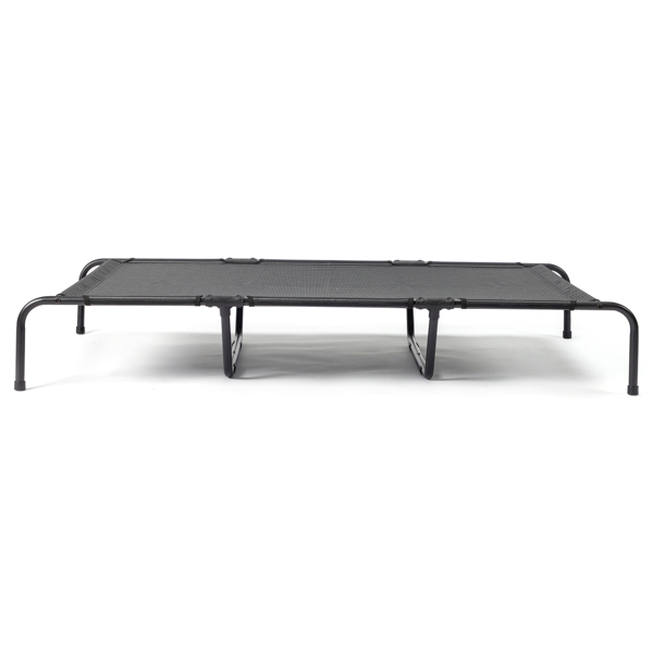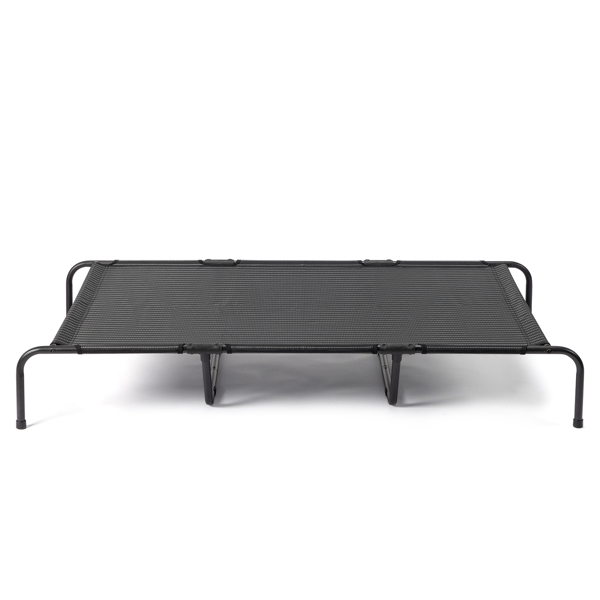 High-quality structure: Large elevated dog bed. Composed of powder-coated steel and Textilene mesh. Breathable fabric promotes air circulation on all sides of the bed, keeping your dog cool and comfortable all year long. The thickened steel material can hold up to 175 pounds, making it suitable for most large dogs.The height is just right for dogs of all ages, from puppies to old.