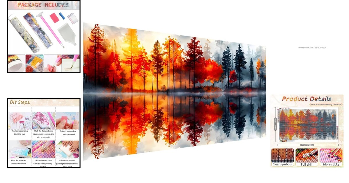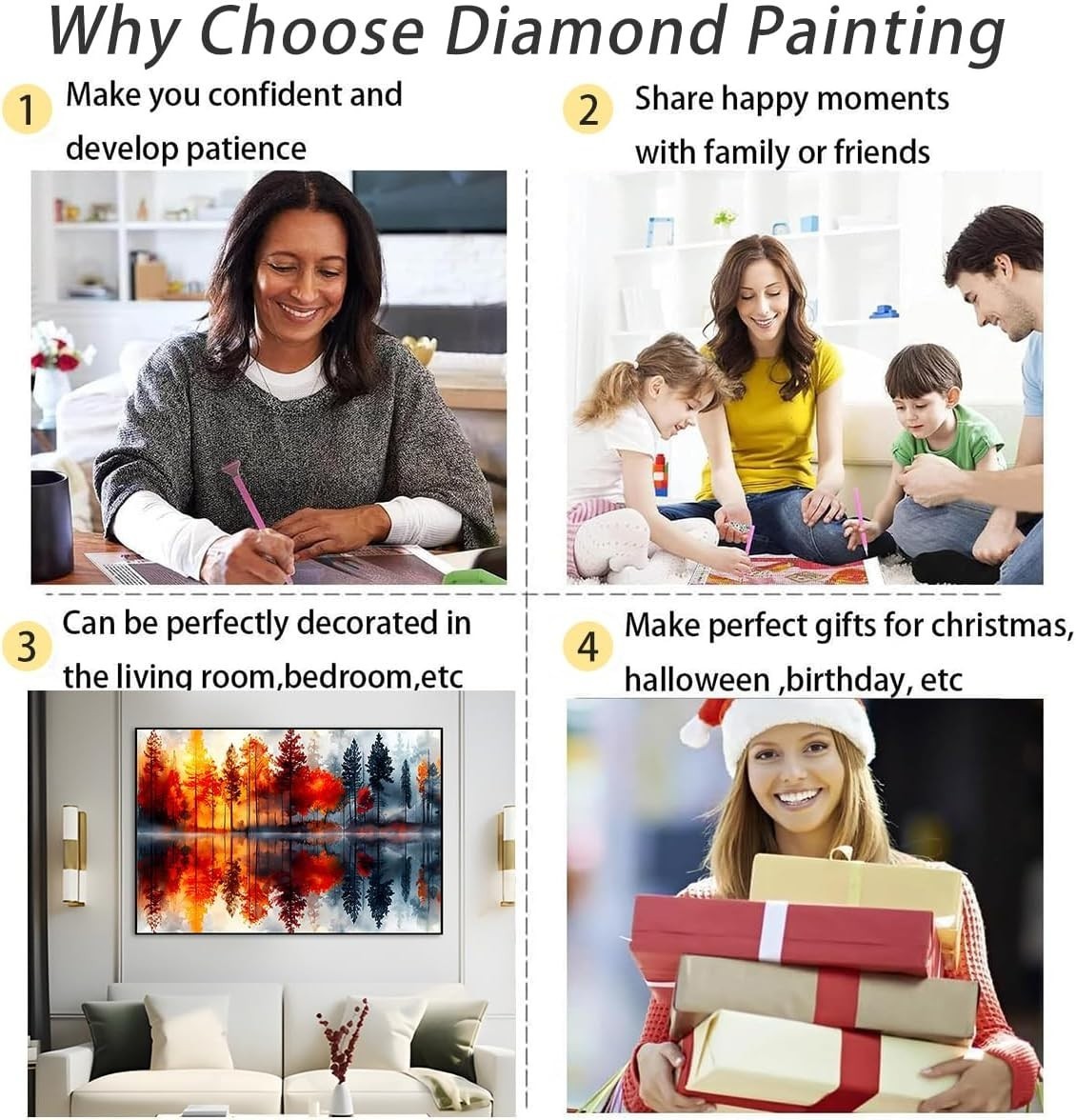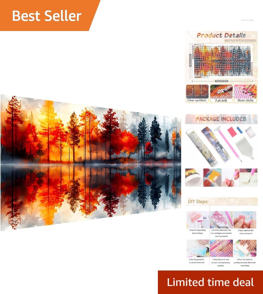 DIY 5D Diamond Art Kit: Large Lake & Forest Reflection Canvas for Relaxation