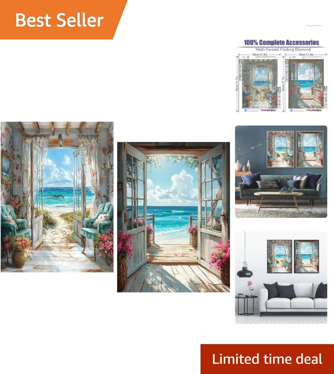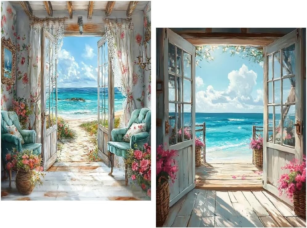 Full Drill 2-Pack Beach-Themed Diamond Painting Kits for Creative Adults