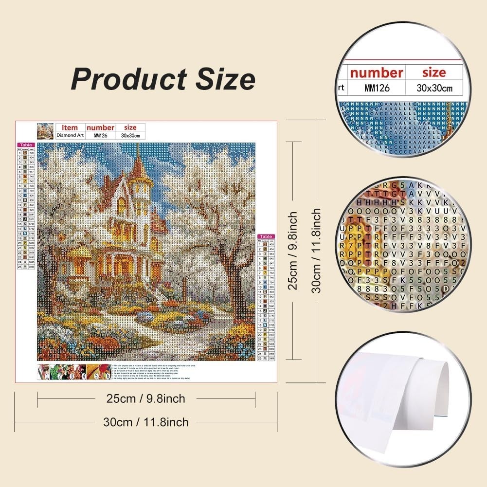 5D Diamond Painting Kit - Garden Castle Design, DIY Art for Home Décor 12x12Inch