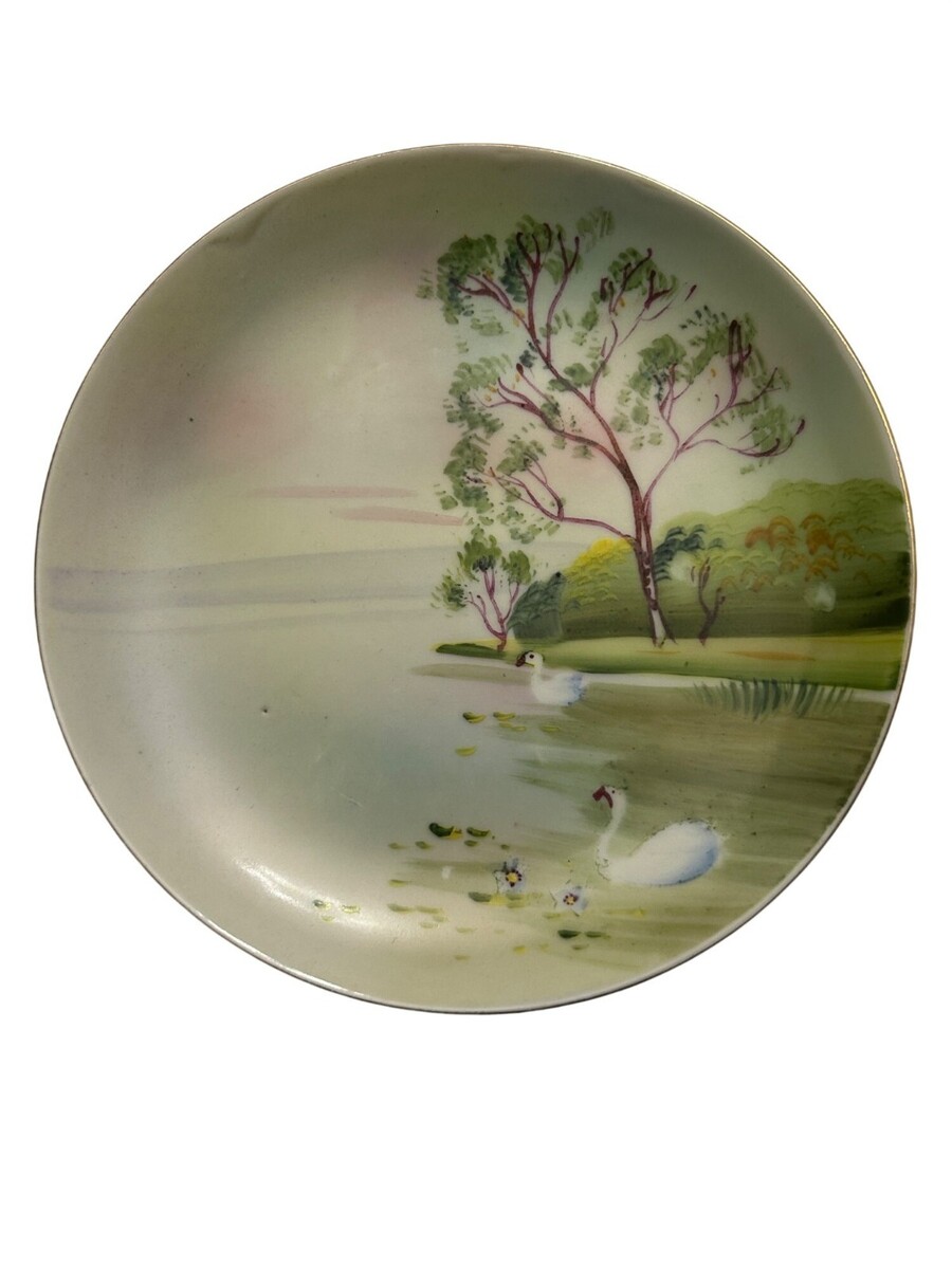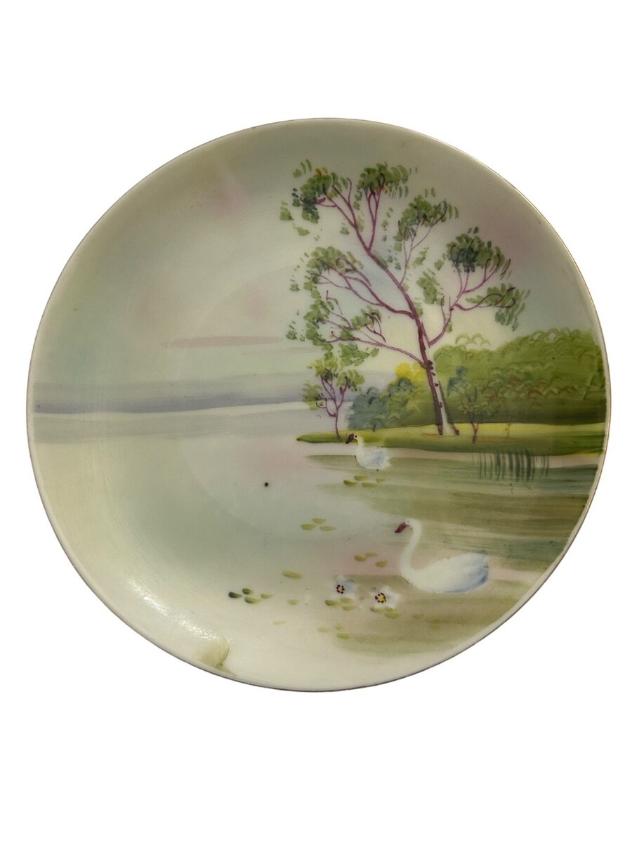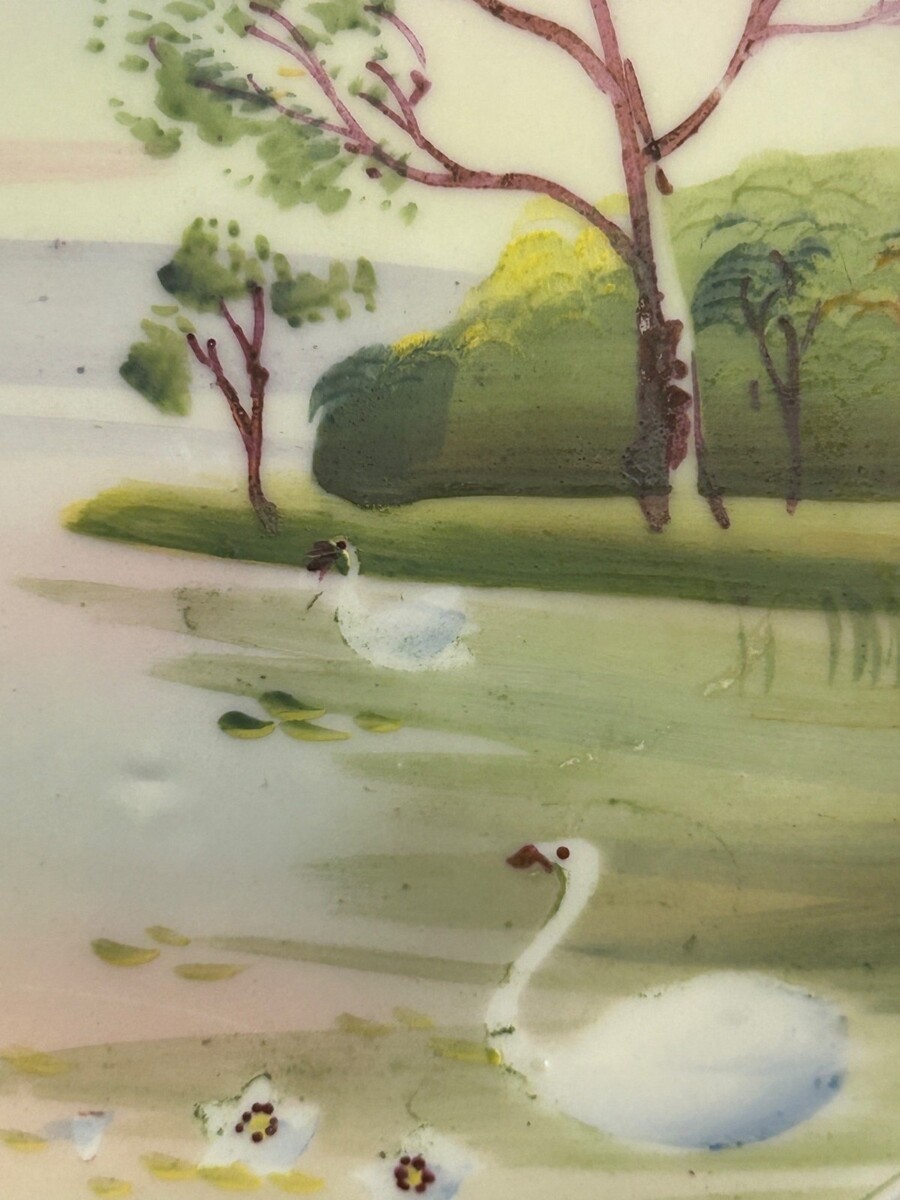 Hand Painted Nippon Morimura Bros Noritake Elite B Pastoral Swan Landscape Porce