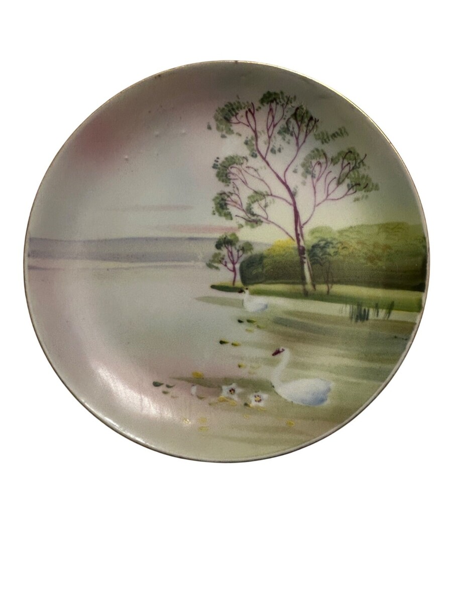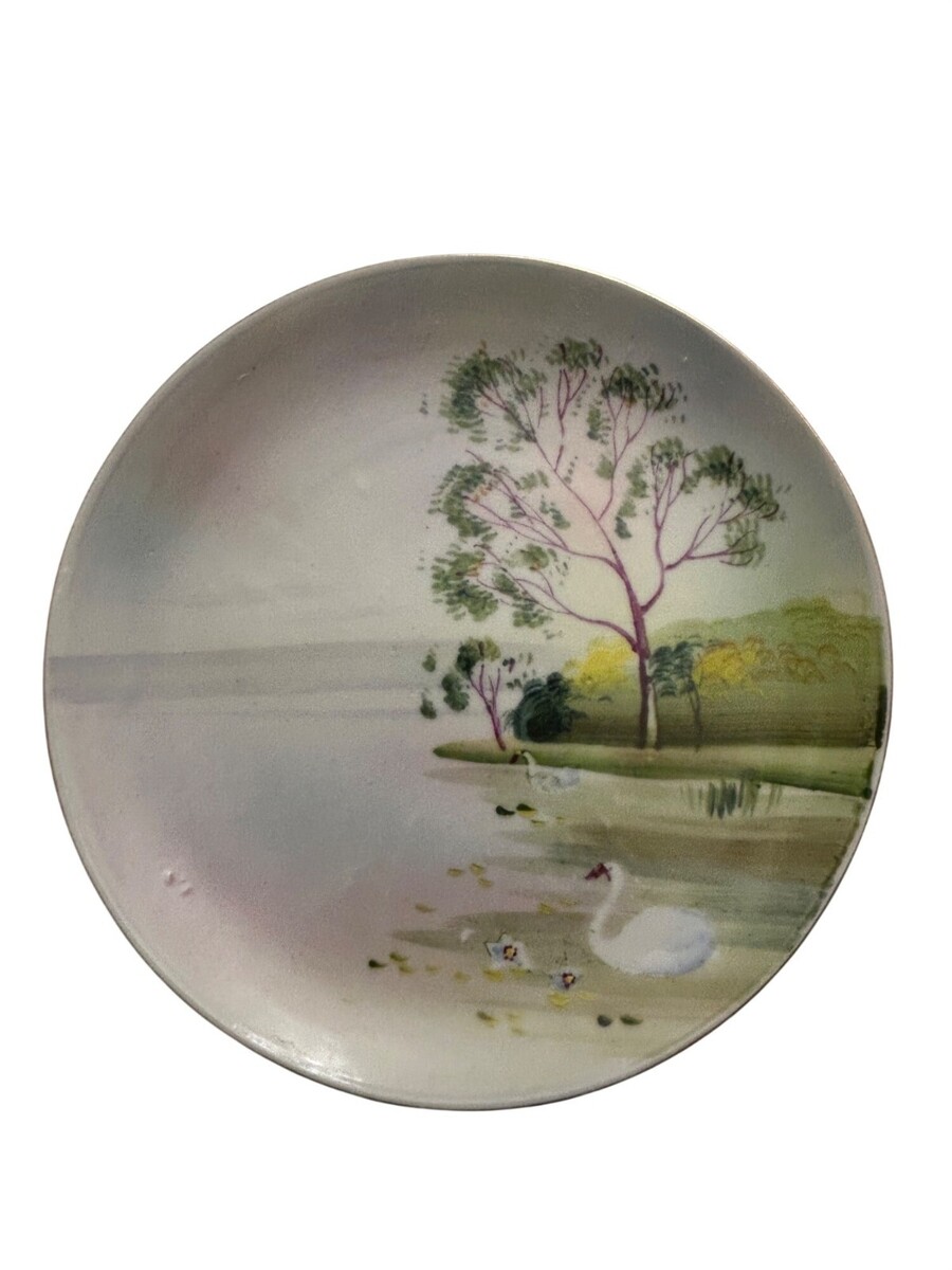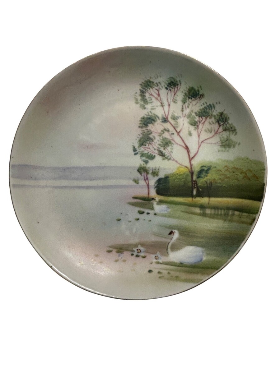 Hand Painted Nippon Morimura Bros Noritake Elite B Pastoral Swan Landscape Porce