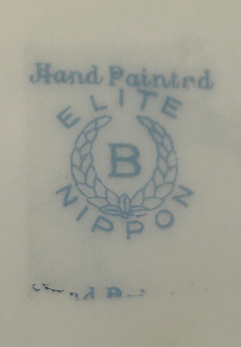 The "Nippon Elite B" mark refers to porcelain produced by the Morimura Brothers (later Noritake) for export, likely between 1891 and 1921. This mark is accompanied by "Hand Painted" which pertains to the high-quality, hand-painted plates.
