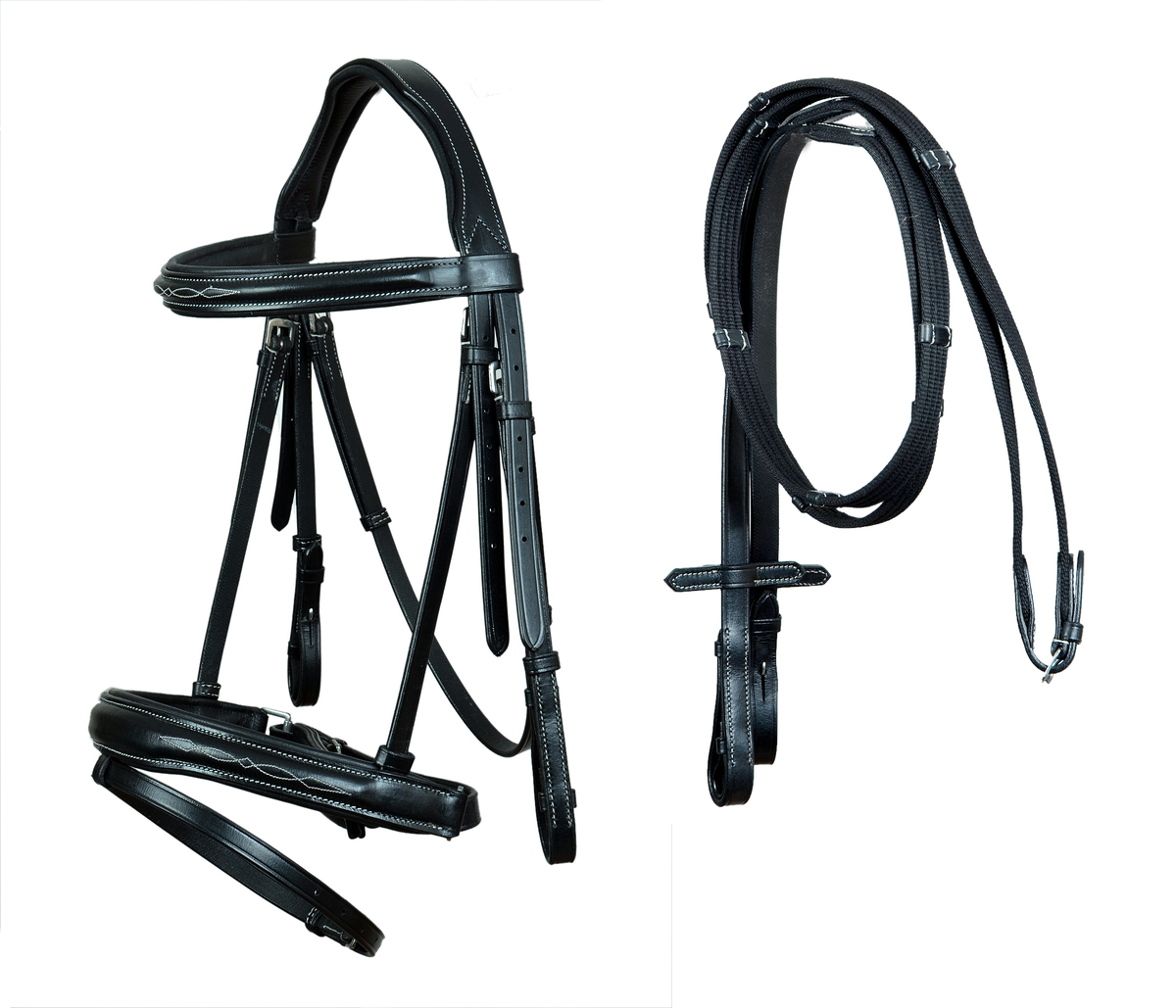 Horse Leather English Bridle Black Padded Fancy Stitch Bridle Reins 803HI31BK-F