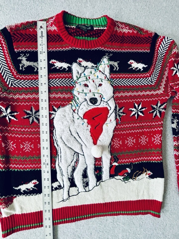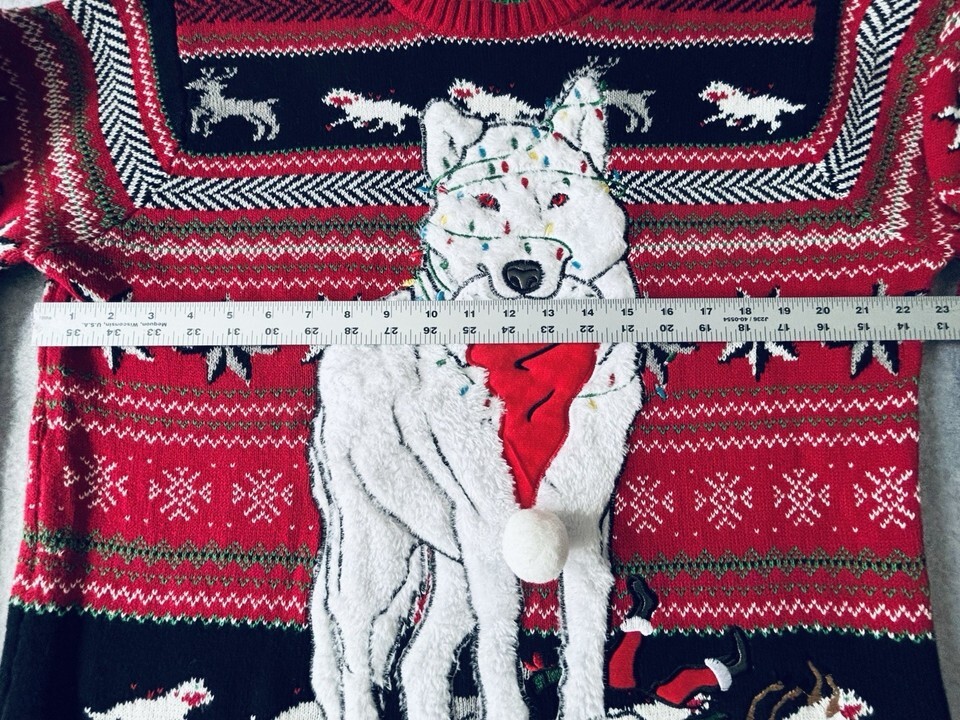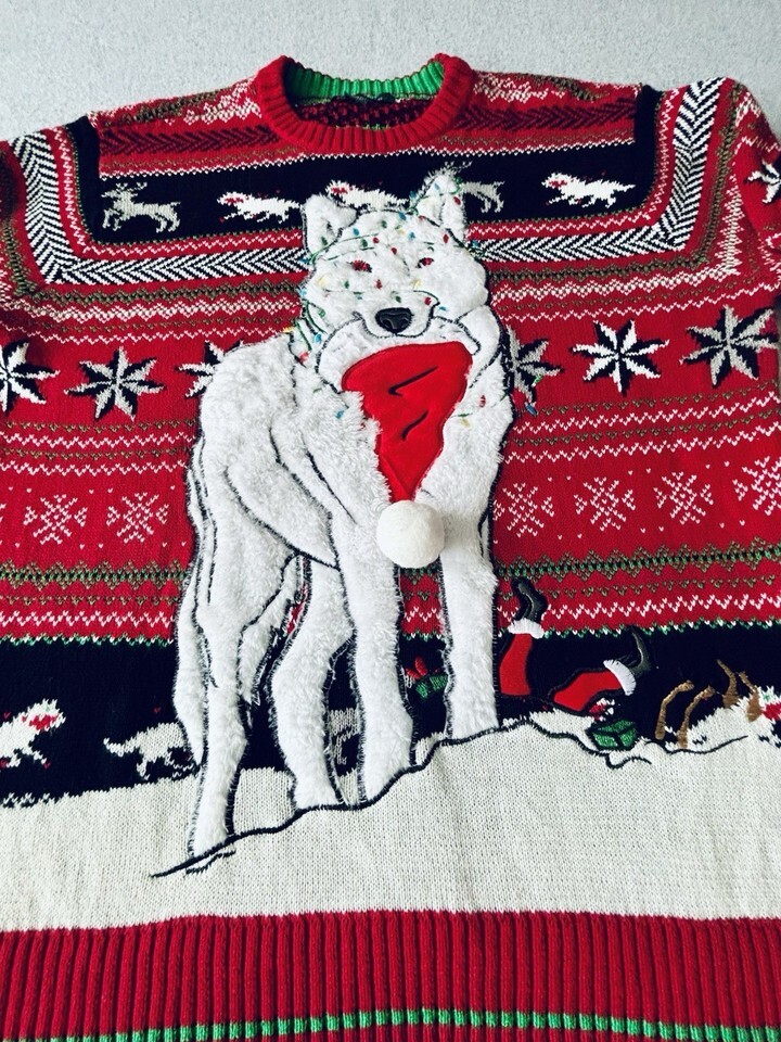 33 Degrees Wolf Lights Deer Christmas Holiday Ugly Sweater Mens Large