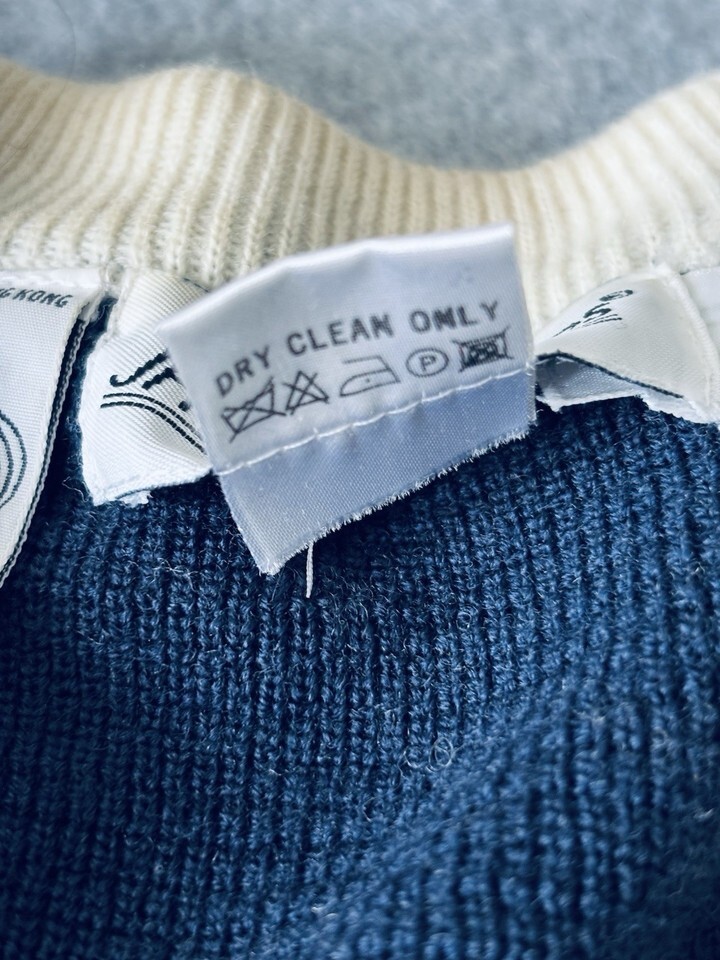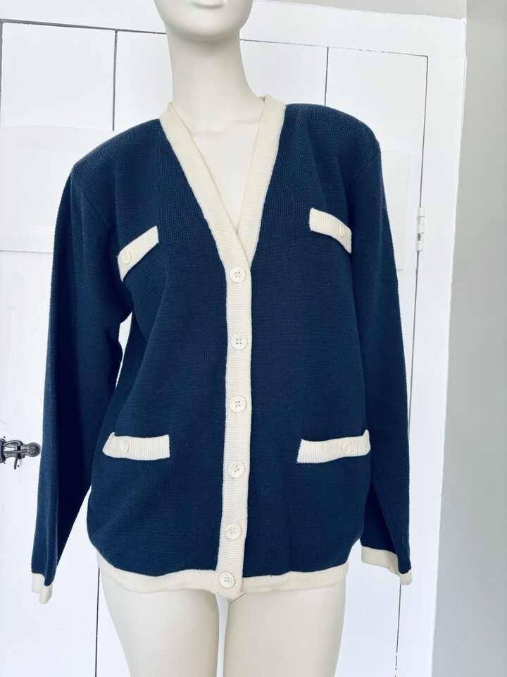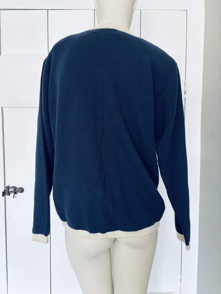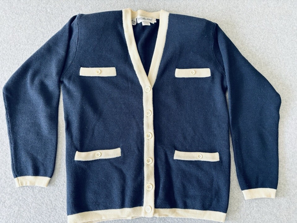Vintage JH Collectibles Merino Wool Cardigan Sweater Blue White Women?s Medium