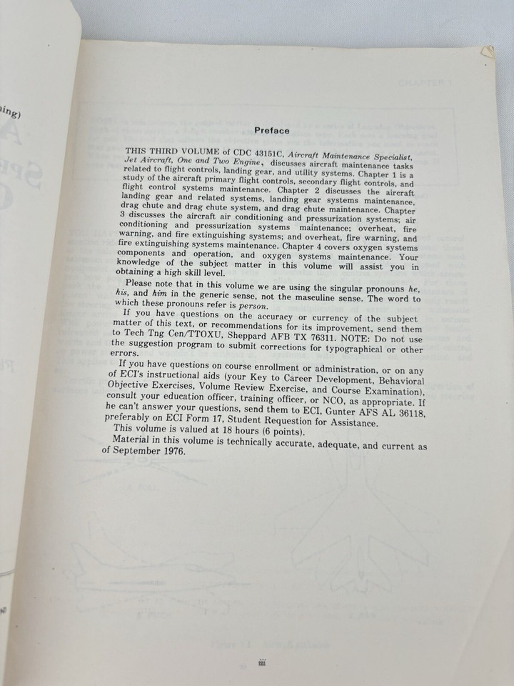 Air University Volume 3 Aircraft Maintenance Specialist, Jet Aircraft, One and Two Engine Book - AFSC 43151C