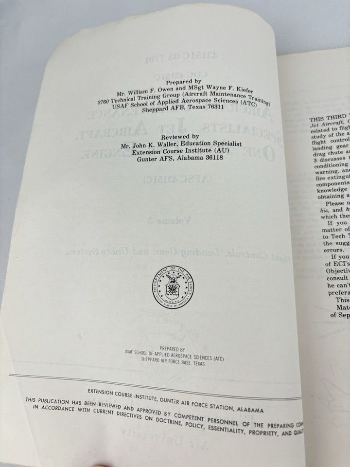 Air University Volume 3 Aircraft Maintenance Specialist Jet One Two Engine Book