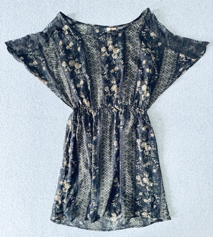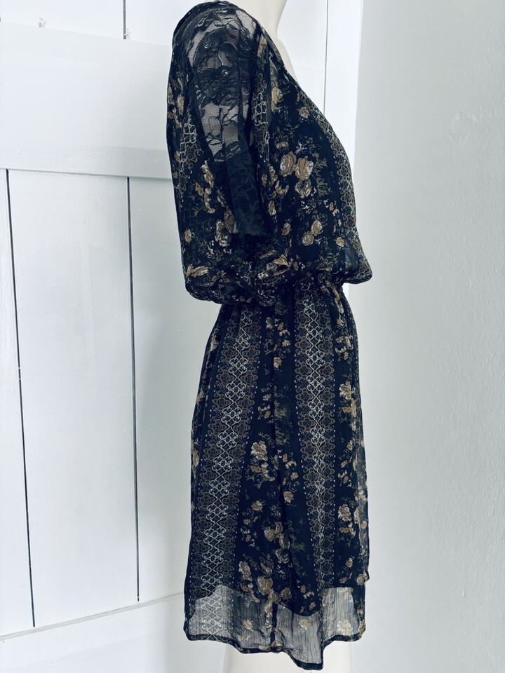 Eyeshadow Sheer Black Floral Lace Mini Shift Dress - Womens Medium Boho Retro