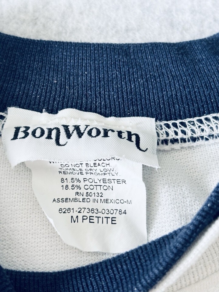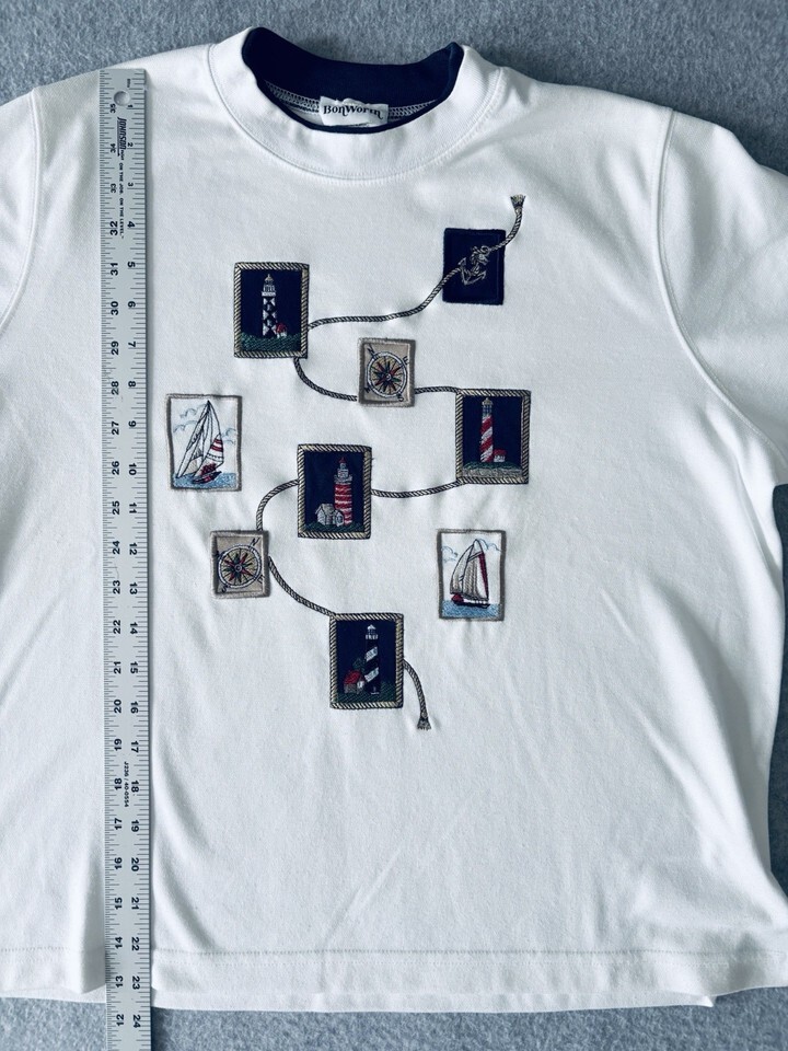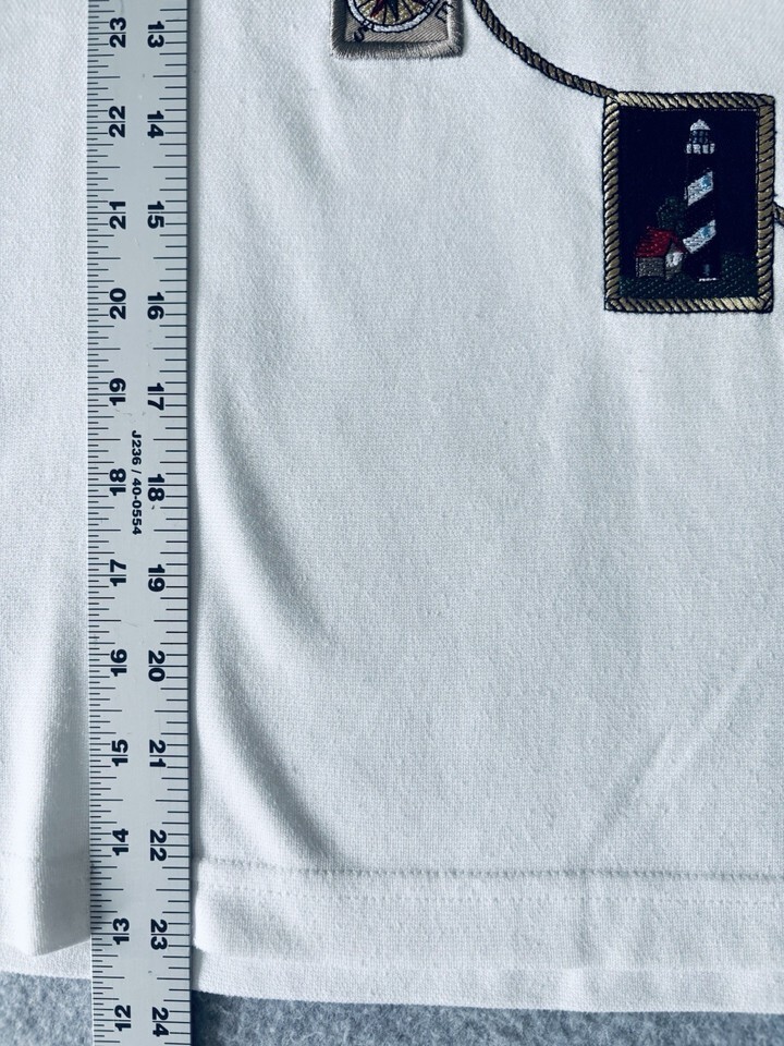 Bonworth Nautical Top Shirt White LIghthouses Sailboat Anchor Ships Vintage MedP