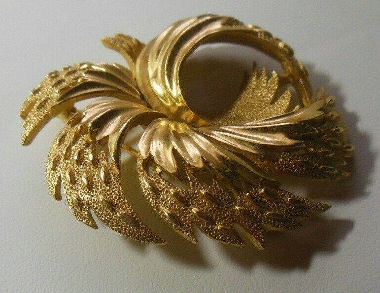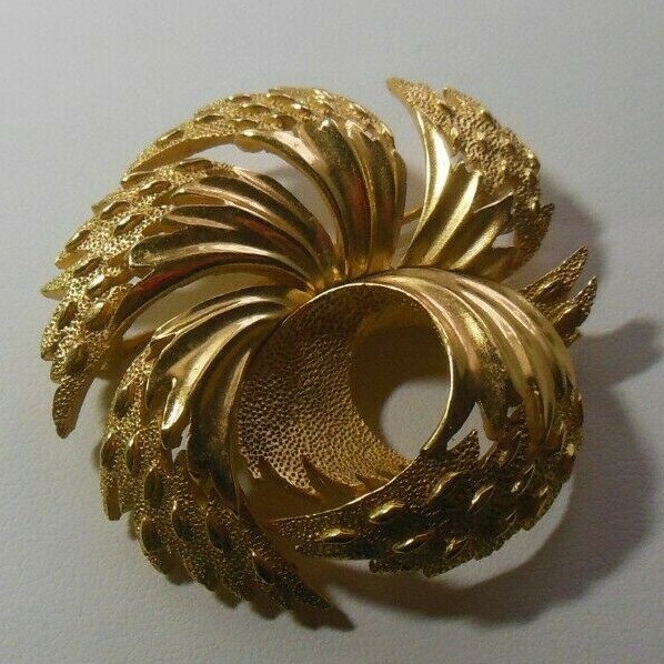 Vintage CROWN TRIFARI Gold-tone Swirl Textured Brooch/Pin