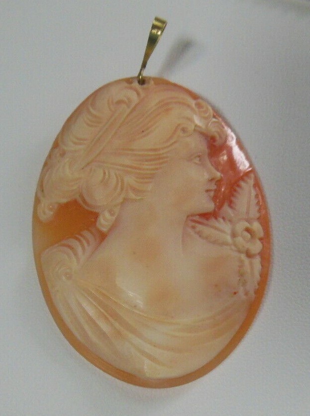 Vintage Cameo Shell Pendant W/750 Stamped Bail