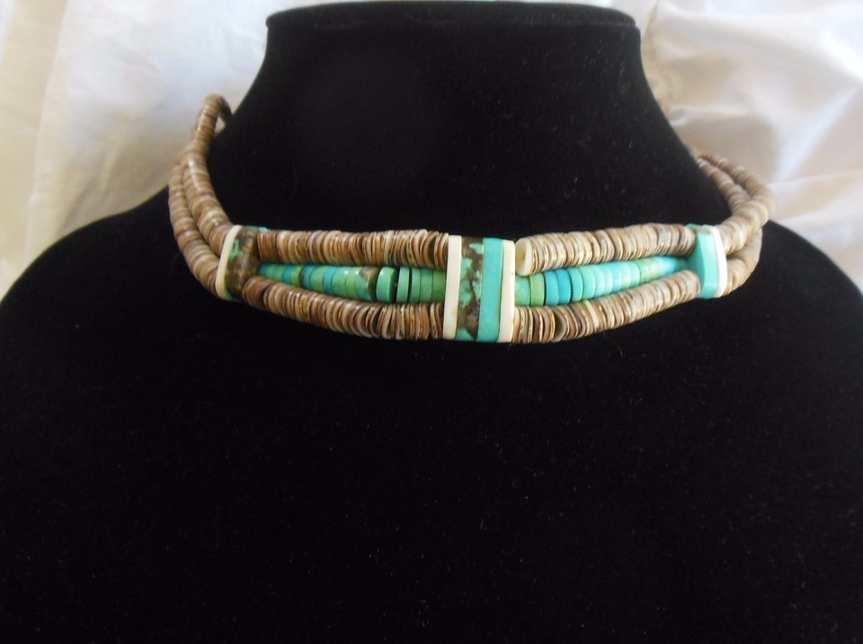 turquoise and heishi shell necklace.