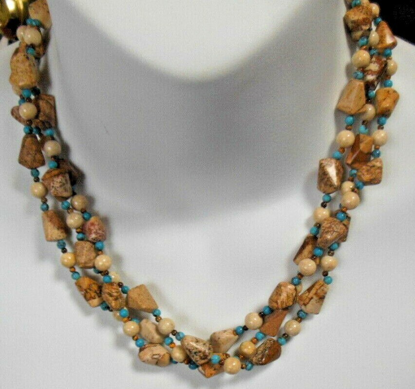 21st and Stone 925 Sterling Silver Triple Strand Genuine Stone Necklace 18.5"