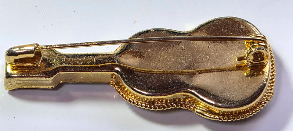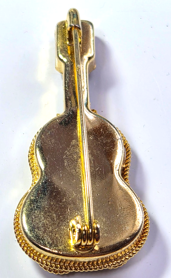 Vintage Gold-tone Multi-color Mosaic Guitar Brooch 1.3/4"