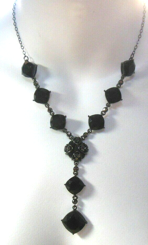 Vintage Signed CROWN TRIFARI Black Faceted Rhinestone Necklace 18” - Adjustable