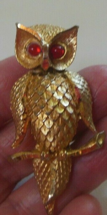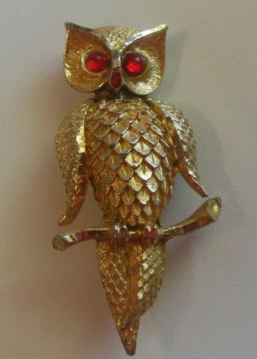 Vintage Signed BSK Gold-tone Owl Brooch W/ and 50 similar items
