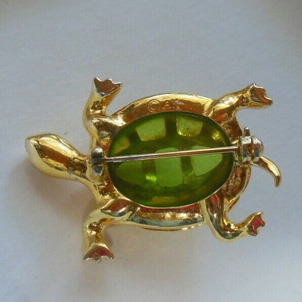 Vintage Signed AK "Anne Klein" Gold-tone Green Jelly Belly Turtle Brooch