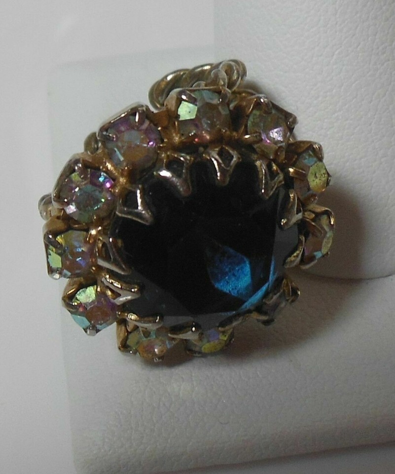 Antique Gold-tone Large Blue Faceted Stone & and 50 similar items