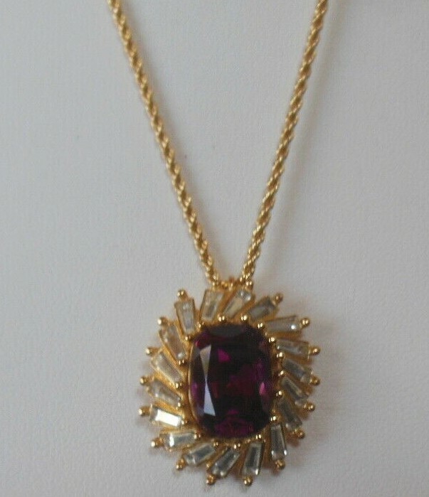 Christian Dior Pendant Necklace Amethyst Purple & Baguette Rhinestones