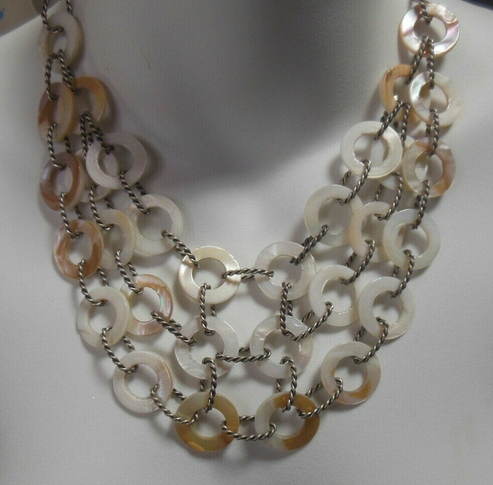 Vintage Premier Designs Silver-tone & MOP Triple Strand Necklace