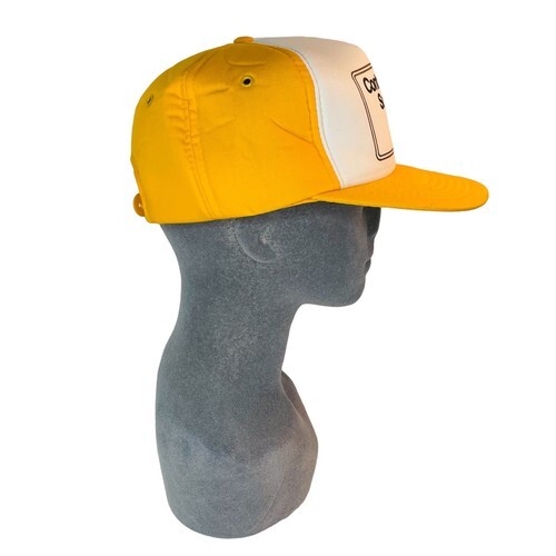 Awesome super vintage Contractors Supply advertising foam Meshback trucker hat for Contractors Supply. Bright yellow and white- made in Korea.