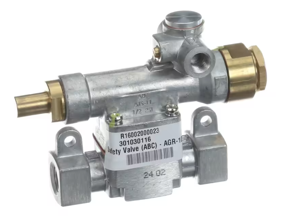 The Atosa R16002000023 / 301030116 Safety Valve (ABC) is a genuine gas control component designed specifically for the Atosa AGR-10B commercial gas range. This safety valve regulates and controls gas flow to ensure safe burner operation and reliable performance. Engineered for commercial durability, it provides dependable gas shutoff protection and supports stable heating performance in demanding kitchen environments. Ideal for replacing a worn or malfunctioning valve, this component restores safe and efficient range operation.
